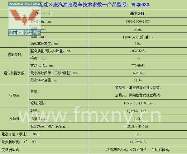 五菱云南汽油巡邏車8座威威燃油前驅(qū)WLQ5080